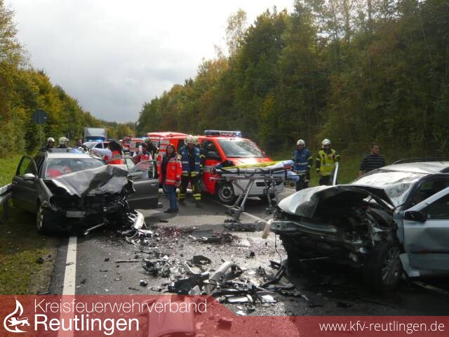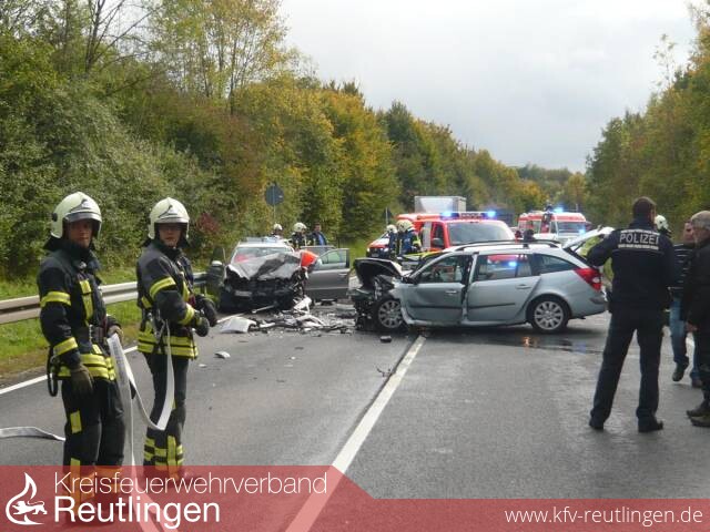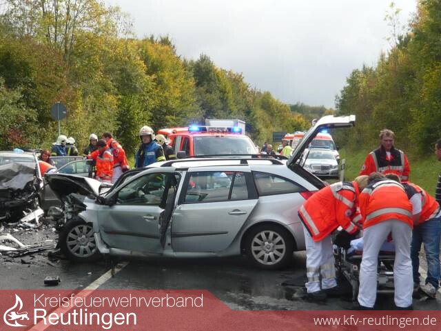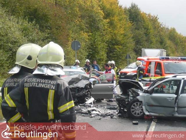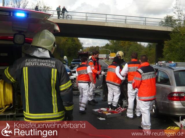 Um 13:13 Uhr ging bei der integrierten Leitstelle für Feuerwehr und Rettungsdienst in Reutlingen der Notruf zu einem Verkehrsunfall auf der B 464 zwischen Anschlussstelle Sickenhausen und Altenburg ein. Der Rüstzug der Feuerwehr Reutlingen sowie Notarzt und Rettungswagen des Rettungsdienstes in Reutlingen wurden zur Einsatzstelle alarmiert.