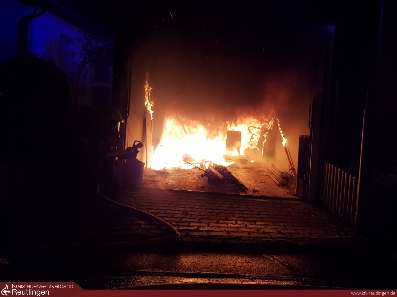 Zum Brand einer Garage sind Feuerwehr und Polizei am frühen Montagmorgen in die Karlstraße ausgerückt. Gegen 4.20 Uhr wurde die Rettungsleitstelle alarmiert, nachdem eine Zeugin die starke Rauchentwicklung und Flammen in der freistehenden Einzelgarage wahrgenommen hatte. Die Feuerwehr Dettingen konnte das Feuer rasch unter Kontrolle bringen und löschen. Es befanden sich keine Fahrzeuge in der Garage. Der entstandene Sachschaden wird auf rund 3.500 Euro geschätzt. Der Polizeiposten Bad Urach hat mit Unterstützung von Kriminaltechnikern die Ermittlungen zur Brandursache aufgenommen.