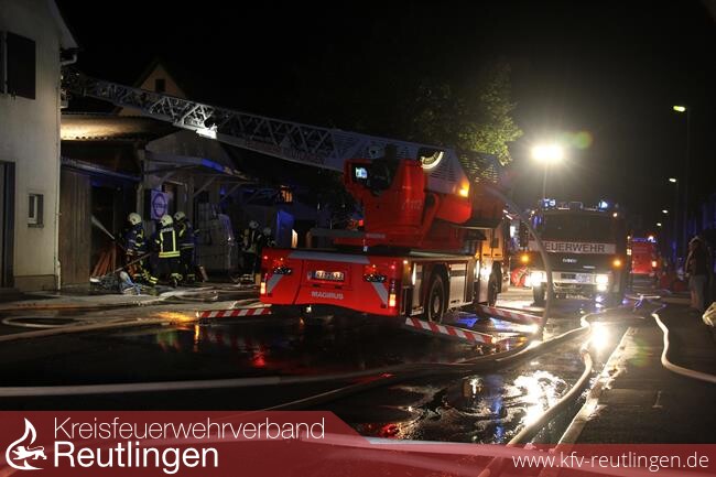 Der Einsatzleiter veranlasste zum Schutz der angrenzenden Gebäude eine Riegelstellung mit drei Löschrohren aufzubauen, um das Ausbreiten des Brandes zu verhindern. Ein weiteres Rohr wurde über die Drehleiter vorgenommen, um ein Übergreifen über den Dachtrauf auf die Schreinerei zu verhindern. Die eingeleiteten Maßnahmen führten schnell zu einem Löscherfolg, sodass die Ausbreitung auf andere Gebäudeteile nicht mehr gegeben war.