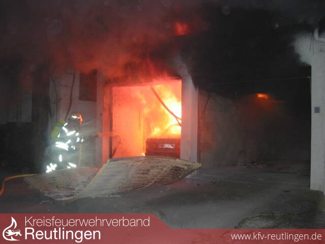 Am späten Samstagabend wurde durch Anwohner über Notruf eine brennende Garage in der Metzinger Straße mitgeteilt. Beim Eintreffen der Einsatzkräfte stand die dortige Garage und ein darin befindlicher Pkw bereits in Flammen. Durch die Freiwillige Feuerwehr Dettingen konnte das Übergreifen auf weitere Gebäude verhindert werden. Ein 37-jähriger Bewohner des Anwesens wurde mit schweren Brandverletzungen angetroffen. Er wurde durch den Rettungsdienst erstversorgt und anschließend in eine Fachklinik gebracht.