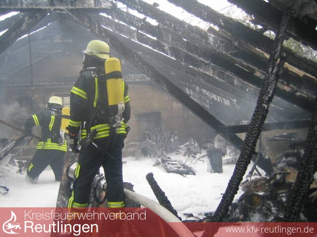 Aufgrund der Brandlast (Heu und Stroh) dauerten die Ab- und Nachlöscharbeiten bis ca. 20:00 Uhr an. Dabei wurde neben dem Einsatz von Netzmittel auch noch auf das Löschmittel Schaum umgestellt.