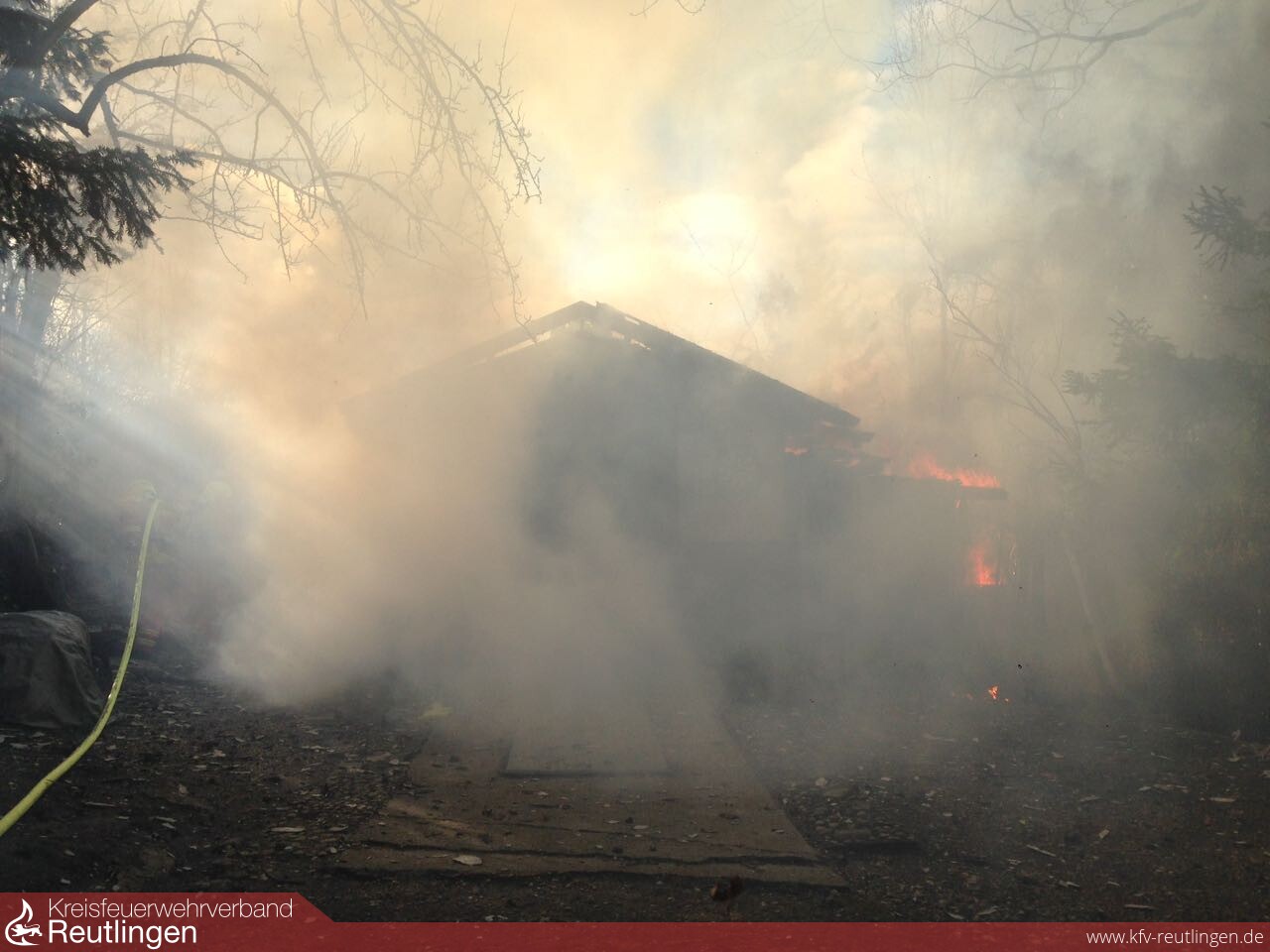 Am Dienstagvormittag, gegen 11.30 Uhr, ist der Polizei Metzingen von einer Spaziergängerin ein brennendes Gartenhaus im Gewann Dachsbühl, abseits der Landesstraße 210 zwischen Metzingen und Kappishäusern, gemeldet worden. Beim Eintreffen der Einsatzkräfte von Polizei und Feuerwehr stand das Gebäude bereits in Vollbrand und konnte beim anschließenden Löscheinsatz nicht mehr gerettet werden. Wie der Brand entstand, ist bislang noch unklar. Es entstand ein Sachschaden im vierstelligen Bereich.