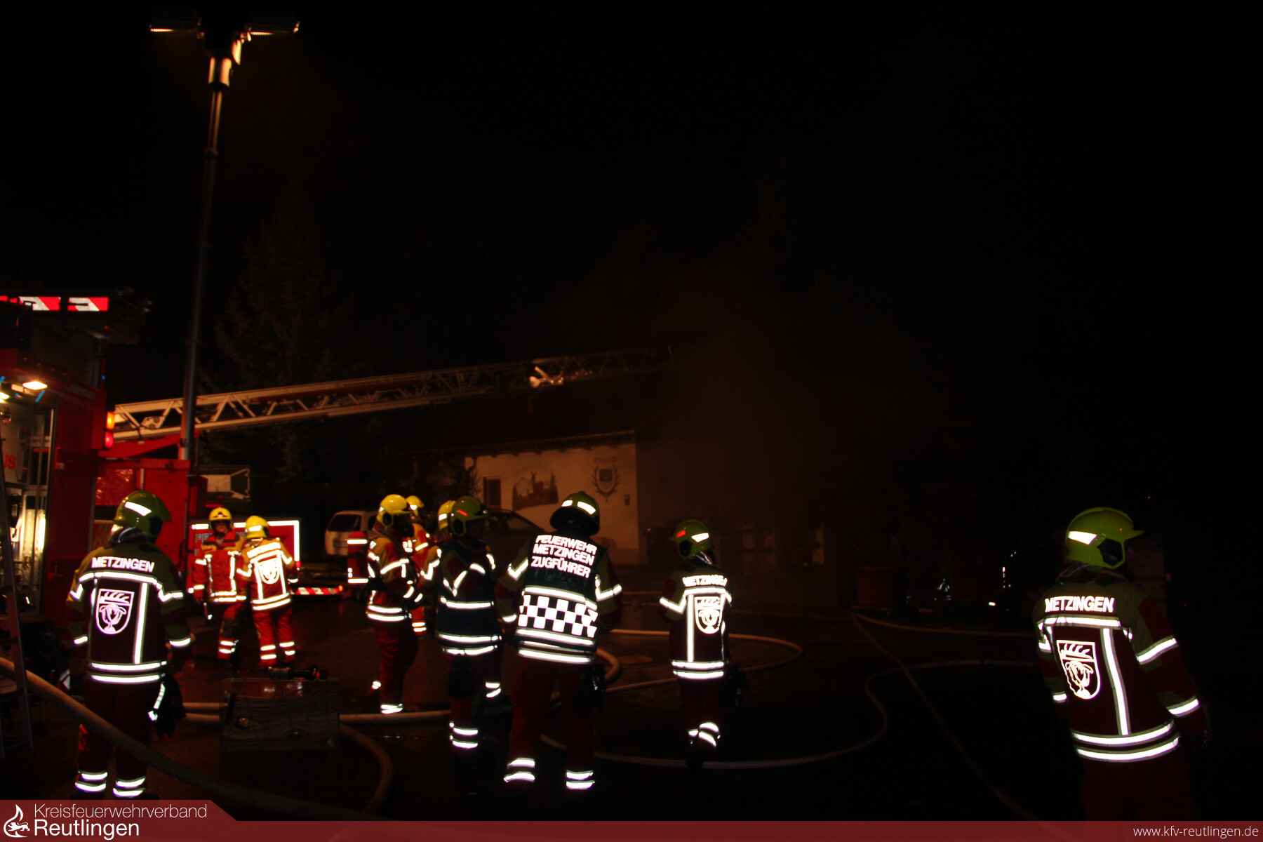 Im Ortsteil Glems ist am Mittwochabend gegen 22.00 Uhr am Anbau eines Mehrfamilienhauses ein Feuer ausgebrochen, welches durch den Wind angefacht worden ist und sich schnell auf das dreistöckige Wohngebäude ausbreitetet hat. Die 5 Bewohner konnten das Haus vor dem Eintreffen der Feuerwehr verlassen. Ein angrenzendes Motel, in welchem sich 16 Personen aufhielten, wurde geräumt. Die Gäste konnten in der Gemeindehalle untergebracht werden. Das Wohngebäude ist derzeit nicht bewohnbar, da bei der Brandbekämpfung auch Teile des Dachstuhls abgetragen werden mussten. Durch das Feuer entstand ein Gebäudeschaden von etwa 200.000 bis 300.000 Euro. Verletzt wurde niemand. Zur Brandursache können noch keine Aussagen gemacht werden, für eine vorsätzliche Brandstiftung gibt es derzeit keine Anhaltspunkte. Beamte der Kriminalpolizei haben vor Ort die Ermittlungen übernommen.
