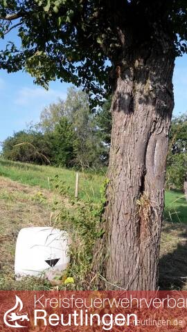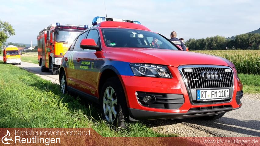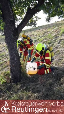 Ein aufmerksamer Bürger entdeckte am Dienstagmorgen auf dem Feldweg zwischen Metzingen und Neuhausen zwei halbvoll gefüllte Kanister, mit einem aufgeklebten Gefahrenzettel „ Ätzende Stoffe“. Der Bürger wählte dann den Notruf 112 und meldete dies der Leitstelle für Feuerwehr und Rettungsdienst. Die Leitstelle alarmierte daraufhin die Feuerwehr Metzingen mit dem Stichwort „ABC-Klein“.