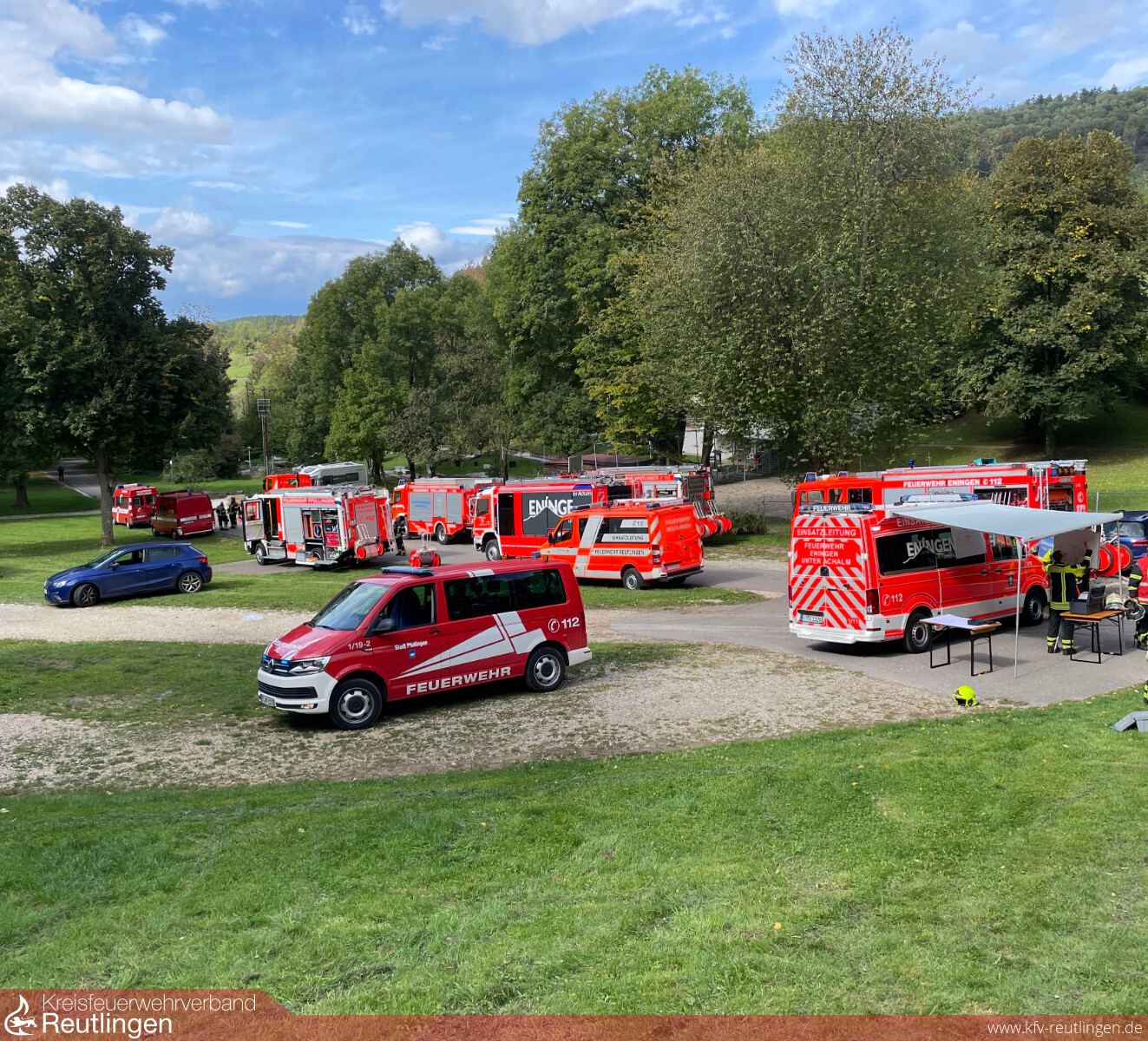 Von Seiten der Feuerwehr waren insgesamt 18 Fahrzeuge und 65 Einsatzkräfte der Feuerwehren Eningen unter Achalm, Reutlingen und Pfullingen sowie der Werkfeuerwehr Bosch Reutlingen vor Ort. Zur Absicherung war der Rettungsdienst mit einem Rettungswagen in Bereitstellung. Neben der Polizei waren ebenfalls Kreisbrandmeister Wolfram Auch, Vertreter des Umweltschutzamtes sowie der Gemeindeverwaltung an der Einsatzstelle. Die Einsatzmaßnahmen konnten nach gut drei Stunden beendet werden.