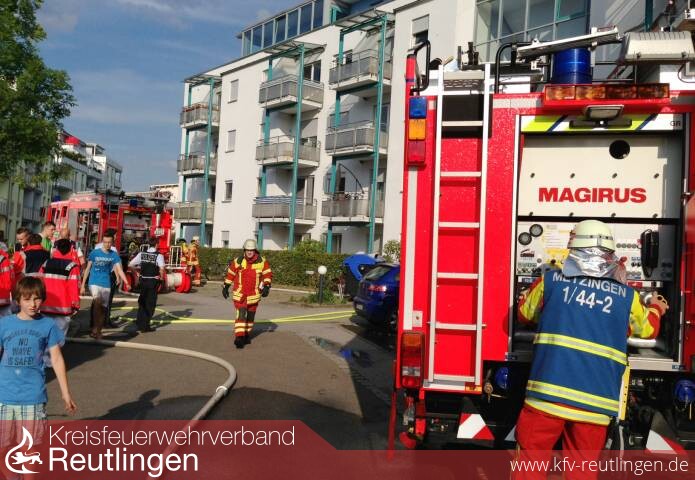 Mehrere Bewohner des viergeschossigen Mehrfamilienhauses waren fast parallel auf den Brand in der Wohnung im Erdgeschoss aufmerksam geworden. Aus dem Fenster drang Rauch, im Flur war ebenfalls bereits eine leichte Verrauchung feststellbar. Für die Rettungskräfte wurde deshalb Großalarm ausgelöst: Neben der Polizei rückten der Rettungsdienst mit einem Notarzteinsatzfahrzeug samt Notarzt und einem Rettungswagen aus Bad Urach aus. Die Feuerwehr Metzingen setzte einen erweiterten Löschzug mit fünf Einsatzfahrzeugen und 40 Einsatzkräfte in Marsch.Vor Ort verschafften sich die Wehrmänner über ein Fenster Zugang zu der total verrauchten Wohnung im Erdgeschoss. Die Atemschutztrupps lokalisierten schließlich ein Feuer im Bereich der Küche, das schnell gelöscht werden konnte. Durch das umsichtige Handeln konnte einerseits der Schaden in der Wohnung gering gehalten werden, andererseits kam es zu keiner Gefährdung für die Bewohner des Mehrfamilienhauses. Die Polizei nahm unmittelbar nach Abschluss der Löscharbeiten die Ermittlungen wegen der Brandursache auf.