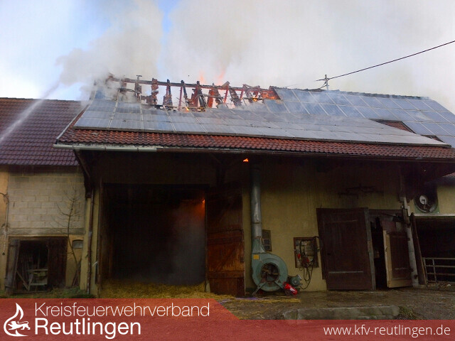 Um 10:13 Uhr gingen über den europaweiten Notruf 112 mehrere Notrufe bei der Integrierten Leitstelle für Feuerwehr und Rettungsdienst über einen Brand in einem landwirtschaftlichen Anwesen in Zwiefalten-Hochberg ein.