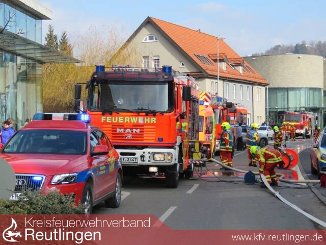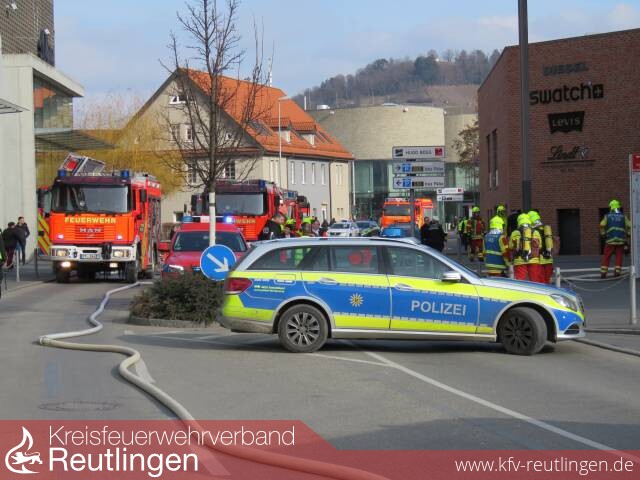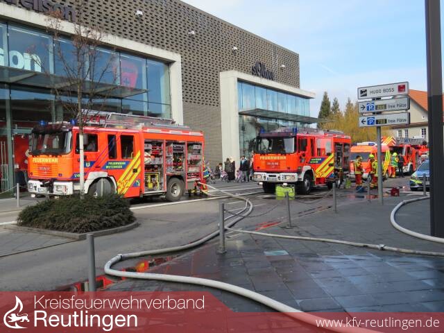 Um 12:45 Uhr löste die automatische Brandmeldeanlage einer Shopping-Mall in der Metzinger Outletcity aus. Bei der Erkundung wurde festgestellt, dass es in einem Müllraum in der Tiefgarage brennt. Daraufhin wurden weitere Kräfte nachgefordert und das Alarmstichwort erhöht.