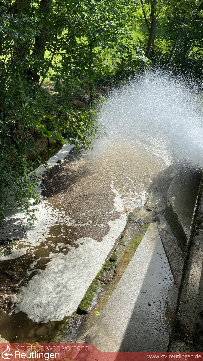 Am Freitagnachmittag wurde die Feuerwehr Eningen unter Achalm um 14:20 Uhr zu einem größeren Umwelteinsatz ins Arbachtal alarmiert. Nach einem Austritt von Gülle an einer Biogasanlage lief diese in den nahegelegenen Arbach. Bei Eintreffen der ersten Einsatzkräfte war der Austritt bereits durch den Betreiber der Anlage gestoppt. In der Folge wurden erste Maßnahmen zur Eindämmung des ausgetretenen Stoffs eingeleitet. Im weiteren Verlauf wurden die im Bachlauf nachgelagerten Kommunen bzw. deren Feuerwehren über das Ereignis informiert. Nach Beratung mit den anwesenden Behördenvertretern wurde entschieden, den in den Arbach ausgetretenen Stoff mit Wasser zu verdünnen. Diese Einsatzmaßnahmen konnten nach über fünf Stunden beendet werden. Von Seiten der Feuerwehr Eningen waren vier Fahrzeuge und 17 Einsatzkräfte vor Ort.