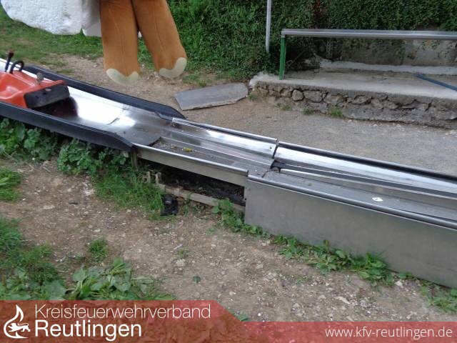 Die 4 Sonnenbühler Abteilungen und der VRW aus Engstingen wurden am Mittwoch Abend gegen 18.36 Uhr laut AAO mit dem Alarmstichwort H3 VU Pkw mit Rettung nach So.Erpfingen an die Sommerbobbahn alarmiert. Nach Eintreffen und erster Erkundung stellte sich heraus das ein Junge mit dem Arm in das Förderband der Bobbahn eingeklemmt war. Ein Mitarbeiter der Bobbahn versuchte ihn schon verzweifelt zu befreien. Dies gelang aber erst mit den Werkzeugen der Feuerwehr. Von den HVO´s des DRK Sonnenbühl und der Rettungswagenbesatzung des Rettungsdienstes wurde der Junge bis zum Eintreffen des Notarztes aus der Luft medizinisch betreut. Der Angeforderte RTH vom ADAC landete in der Nähe und der Notarzt wurde von der Feuerwehr an den Einsatzort gebracht. Der Unfall ereignete sich wie sich später herausstellte beim spielen der Jungs am Auslauf der Bobbahn, wo die Wagen mit einem Gummiförderband abtransportiert werden. Bei dem verunfallten Jungen handelt es sich um den Enkel des Bobbahnbetreibers. KBM Auch war ebenfalls vor Ort.