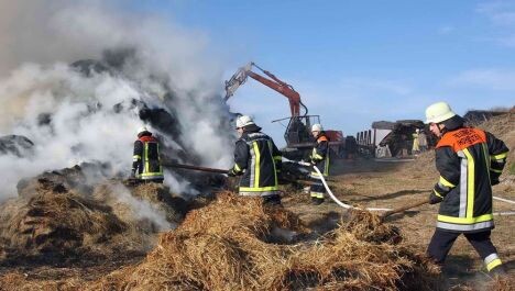 Zum Brand eines Heu- und Strohballenlagers mussten Feuerwehr und Polizei am Dienstagnachmittag in den St.-Wendelin-Weg ausrücken. Dort hatte ein Anwohner um 15.50 Uhr in der Nähe eines Aussiedlerhofes entdeckt, dass die im Freien auf einer Wiese gelagerten und in Folie eingeschweißten Rundballen teilweise brannten und starken Rauch entwickelten. Glücklicherweise zog der Rauch nach Westen ab, so dass weder die Bevölkerung in Oberstetten, noch der Verkehr auf der B 312 beeinträchtigt wurde. Ein Ablöschen der etwa 100 teils brennenden, teils schwelenden Ballen gestaltet sich schwierig. Es ist damit zu rechnen, dass der Einsatz der Feuerwehr Hohenstein bis in die Nacht oder darüber hinaus andauern wird.