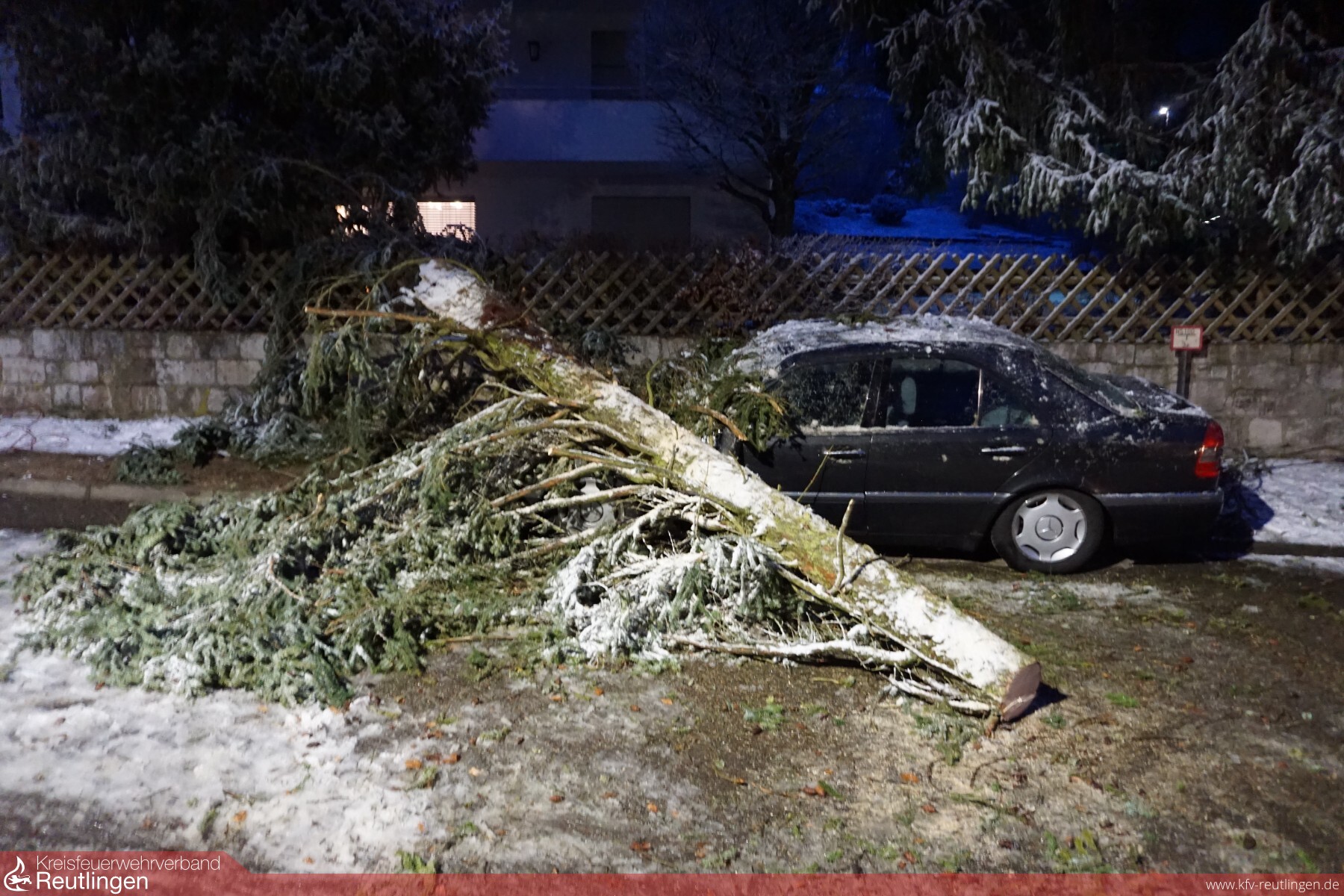 Nach einem Unwetter durch Sturm, starken Windböen und Schneefall, wurde die Feuerwehr Lichtenstein kurz nach 6Uhr zu 3 Einsatzstellen alarmiert. Betroffen war die Albhochfläche, mit den Ortsteilen Traifelberg und Göllesberg. Einsatzdauer ca. 2 Stunden.