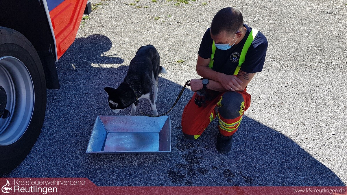 Die Feuerwehrmänner befreiten den Hund und gaben ihm etwas Wasser zu trinken. Anschließend holten Mitarbeiter des Tierheims Reutlingen den Hund ab und versorgten ihn.