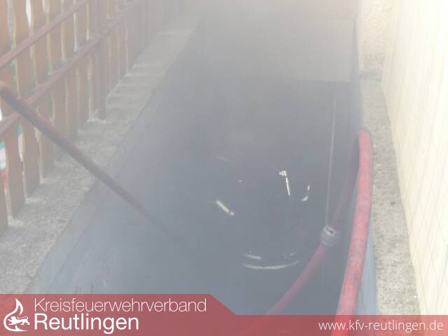 Der Einsatzleiter setzte daraufhin den ersten Trupp unter Atemschutz und einer Wärmebildkamera zum Absuchen des Gebäudes im Erd- und Obergeschoss ein. Während dessen konnte im Keller das Feuer lokalisiert werden. Ein weiterer Trupp wurde zur Brandbekämpfung über die Außentreppe zur Brandbekämpfung eingesetzt. Das Feuer konnte rasch gelöscht und das Gebäude mit einem Drucklüfter entraucht werden.