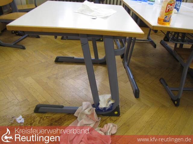Beim umkippen von einem Stuhl kam ein Schulmädchen so unglücklich mit ihrem Knie zwischen zwei Streben des Schultisches, das sie dazwischen eingeklemmt wurde und nicht mehr von selbst heraus kam. Mittels einer Eisensäge und dem Hebesatz wurde das Mädchen aus ihrer misslichen Lage befreit. Das Mädchen erlitt leichte Verletzungen und konnte nach dem Schreck auch schon wieder lächeln.