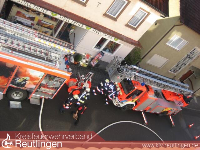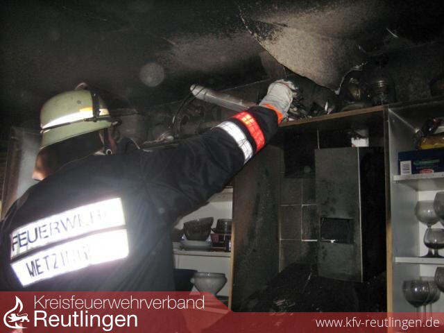 Rund 50.000 Euro Sachschaden entstand bei einem Küchenbrand in einem Mehrfamilienhaus in der Olgastraße in Metzingen. Nachdem das Feuer gegen 11.30 Uhr von Passanten entdeckt worden war, konnte die Metzinger Feuerwehr den Brand im zweiten Obergeschoss rasch löschen. Der Wohnungsinhaber hatte Nudeln in einem Topf auf dem Elektroherd in der Küche abgekocht und beim Verlassen seiner Wohnung offensichtlich vergessen, die Herdplatte auszuschalten. Durch die starke Hitzeentwicklung verkohlten die Nudeln nach einiger Zeit im Topf und es entstand ein offenes Feuer. Die Flammen griffen schließlich auf das Inventar der Küche über, wobei es zu einer starken Rauch- und Rußentwicklung kam. Der größte Schaden entstand zwar in der Küche, aber auch die restliche Wohnung wurde durch die Rußentwicklung stark in Mitleidenschaft gezogen. Verletzte waren zum Glück jedoch nicht zu beklagen. Zunächst war die Feuerwehr davon ausgegangen, dass sich noch eine Person in der Wohnung befindet, so dass drei Trupps parallel zur Vermisstensuche eingesetzt worden sind. Zur Brandbekämpfung setzte man zwei C-Rohre ein. Vom Wohnungsinhaber wurde lobend erwähnt, dass es fast zu keinem Wasserschaden gekommen ist. Die Wohnungen in den Untergeschossen sowie im Dachgeschoss blieben vom Feuer unversehrt.