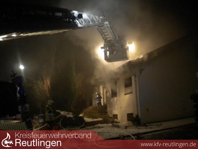 Nachdem das Feuer auch auf den Dachvorsprung überzuspringen drohte wurde ein höheres Maß an Einsatzkräften notwendig, woraufhin ein weiteres Löschfahrzeug der Freiwilligen Feuerwehr zur Einsatzstelle entsandt wurde. Der Brand konnte anschließend mit drei Löschrohren unter Kontrolle gebracht und gelöscht werden.