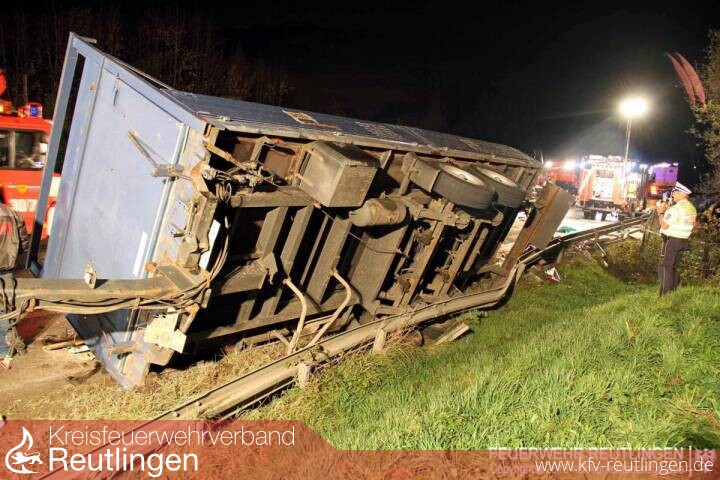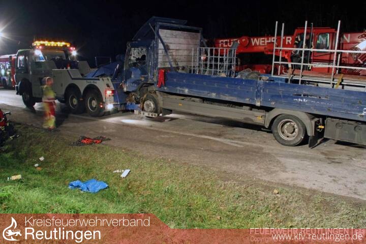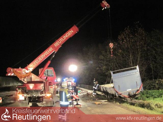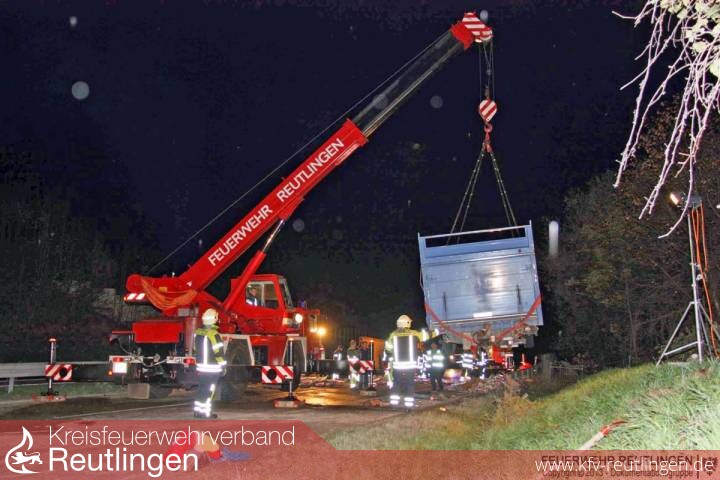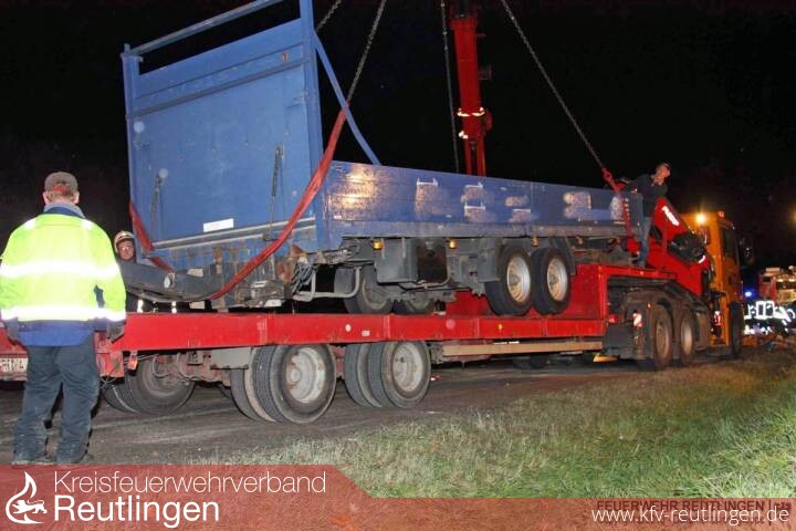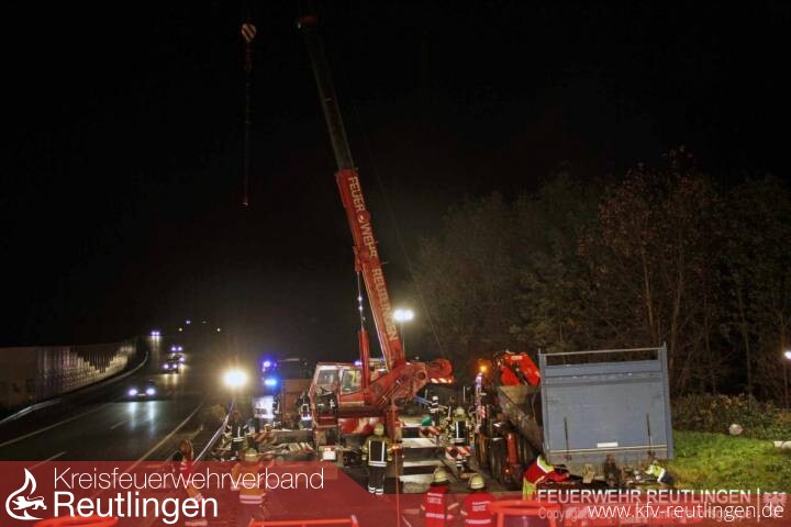 Während des gesamten Einsatzes war die Bundesstraße in Richtung Metzingen voll gesperrt.