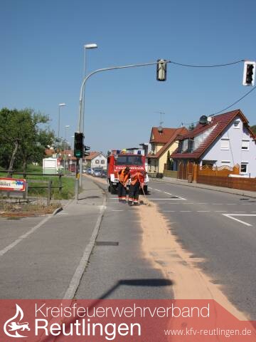 Lichtenstein-Unterhausen. Dicke Luft in Unterhausen. Ein kleines Allzweckfahrzeug des Lichtensteiner Bauhofs hinterließ gestern kurz vor 12 Uhr eine lange Ölspur. 15 Mann der Feuerwehr und Bauhofmitarbeiter rückten aus, um das Hydrauliköl mit Ölbinder abzudecken. Und das von der Ortseinfahrt aus Richtung Pfullingen bis zur Ortsmitte. Was nicht nur dazu führte, dass sich der Verkehr zur Mittagszeit bis zur Hortense staute, sondern auch für einen gelben Dunstschleier im Ort sorgte. Denn die Autos wirbelten den Ölbinder in der Ortsdurchfahrt stark auf. Vor nicht allzu langer Zeit war schon einmal bei einem Bauhoffahrzeug unbemerkt eine Hydraulikleitung geplatzt und das hatte ebenfalls eine lange Ölspur hinterlassen. Dieses Fahrzeug ist bereits ersetzt. Auch für das Allzweckfahrzeug ist die Zeit abgelaufen. In drei Wochen wird der schon bestellte Ersatz ausgeliefert. (us)