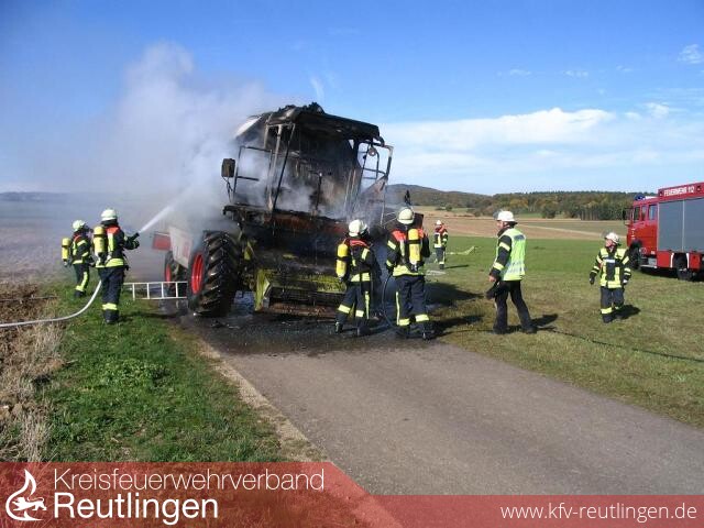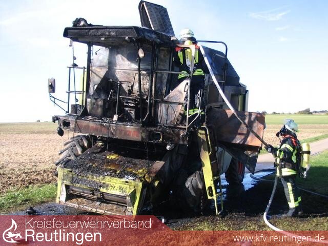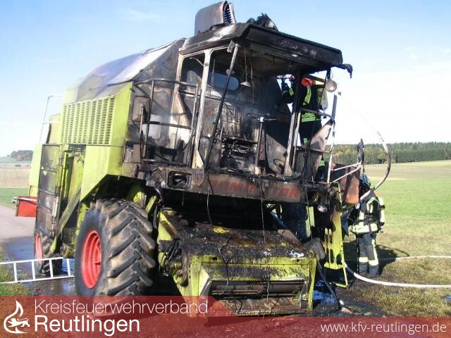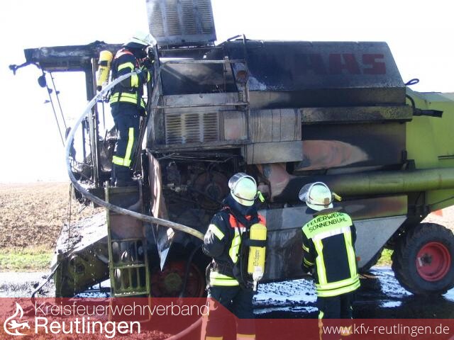 Erheblicher Schaden entstand an einem Mähdrescher, der am Montagmittag in Erpfingen in Brand geraten war. Als der Fahrer mit dem Mähdrescher gegen 15.00 Uhr auf einem Feldweg Richtung Dreherhof unterwegs war, begann es plötzlich aus dem Motor heraus zu qualmen. Nachdem der Fahrer angehalten hatte und ausgestiegen war, griff das Feuer bereits auf das Führerhaus über. Obwohl der Fahrer mit einem Feuerlöscher den Brand bekämpfte und die Sonnenbühler Feuerwehr mit zwei Löschfahrzeugen anrückte und den brennenden Mähdrescher löschte, konnte nicht mehr verhindert werden, dass dessen Führerhaus vollständig ausbrannte und an dem Mähdrescher erheblicher Schaden entstand.