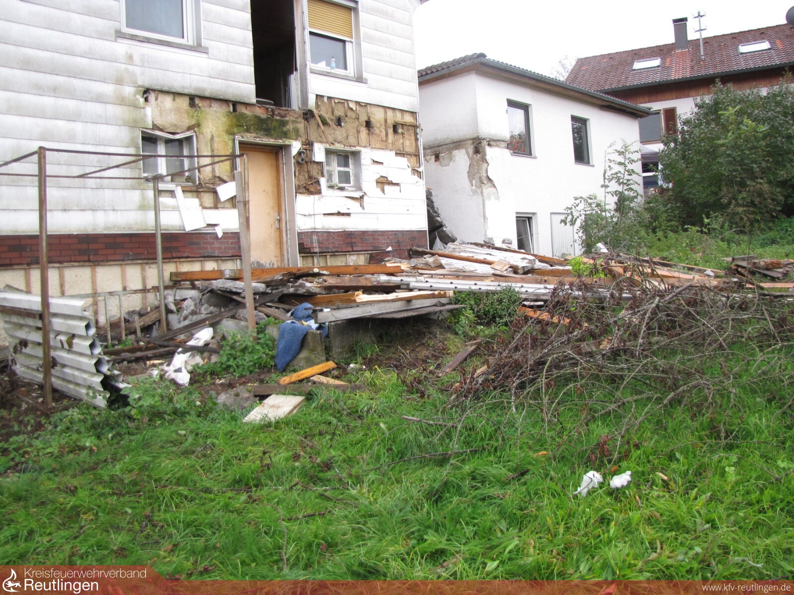 Der Verunglückte führte auf dem Balkon Abbrucharbeiten durch. Hierbei brach der Balkon vorzeitig ein, so dass der 38 Jährige nach unten fiel und von den einstürzenden Stahlbetonplatten verschüttet wurde.