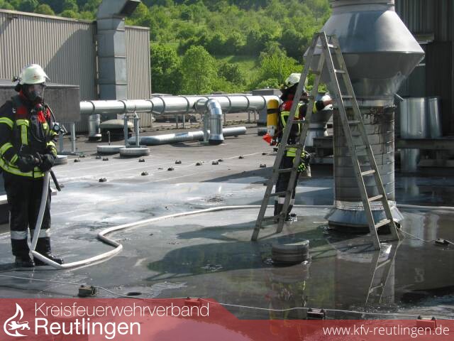 Im Anschluss an die Löscharbeiten wurde die Abluftöffnung auf dem Dach kontrolliert.