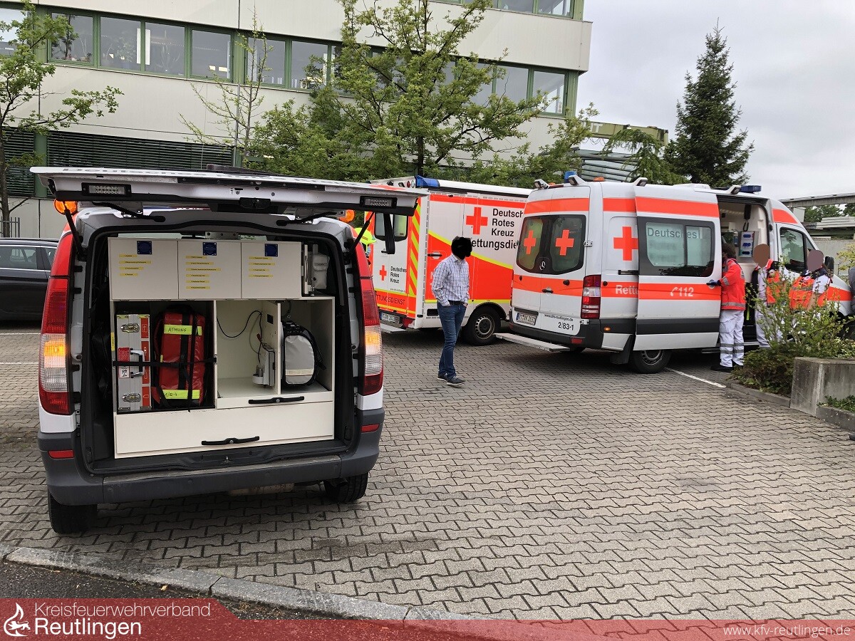 Vier Personen sind am Dienstag vom Rettungsdienst in Klinken gebracht worden, weil sie bei Löschversuchen giftigen Brandrauch eingeatmet hatten. Um 10:28 Uhr war die Feuerwehr Metzingen über die automatische Brandmeldeanlage zu einem Betrieb in die Ziegeleistraße gerufen worden. Wie sich herausstellte, hatten Handwerker einen Teppichboden auf eine Heizung gelegt. Dieser hatte sich entzündet und drohte auf weitere Teile des Büros überzugreifen. Mit mehreren Handfeuerlöschern gelang es Mitarbeitern des Betriebs, das Feuer bis zum Eintreffen der Feuerwehr weitestgehend abzulöschen. Um letzte Glutreste sicher ablöschen zu können, musste die Heizung in Teilen demontiert werden. Neben einer Streife der Polizei war die Feuerwehr Metzingen mit einem Löschzug und 17 Kräften im Einsatz. Zur Versorgung der Betriebsangehörigen setzte der Rettungsdienst zwei Rettungswagen der DRK-Rettungswache Bad Urach und ein Notarzt-Einsatzfahrzeug ein, das vom Klinikum Reutlingen ausgerückt war. Durch den beherzten Einsatz der Betriebsangehörigen hat sich der Sachschaden in Grenzen gehalten. Nach Aussage der Feuerwehr hatten sich die anderen Mitarbeiterinnen und Mitarbeiter mustergültig verhalten. So war das gesamte Gebäude beim Eintreffen der Einsatzkräfte geräumt. Nach rund einer Stunde durfte die Belegschaft ihre Arbeit wiederaufnehmen.