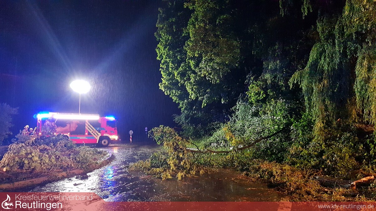 Am 23. Juni erreichte um kurz nach 18 Uhr ein Unwetter mit heftigem Starkregen und großem Hagel das Stadtgebiet von Metzingen. Walnuss- bis golfballgroße Hagelkörner verstopften unter anderem Kanaleinläufe oder rissen größere Äste zu Boden. Des Weiteren stürzten mehrere Bäume durch Windböen um. Ebenfalls durch starke Windböen wurde ein Flachdach abgedeckt. Insgesamt wurde die Feuerwehr Metzingen zu 16 unwetterbedingten Einsätzen gerufen. Die Feuerwehrabteilungen Neuhausen und Glems unterstützten im Rahmen der Überlandhilfe die Feuerwehr Reutlingen mit 4 Fahrzeugen und rund 24 Einsatzkräften.