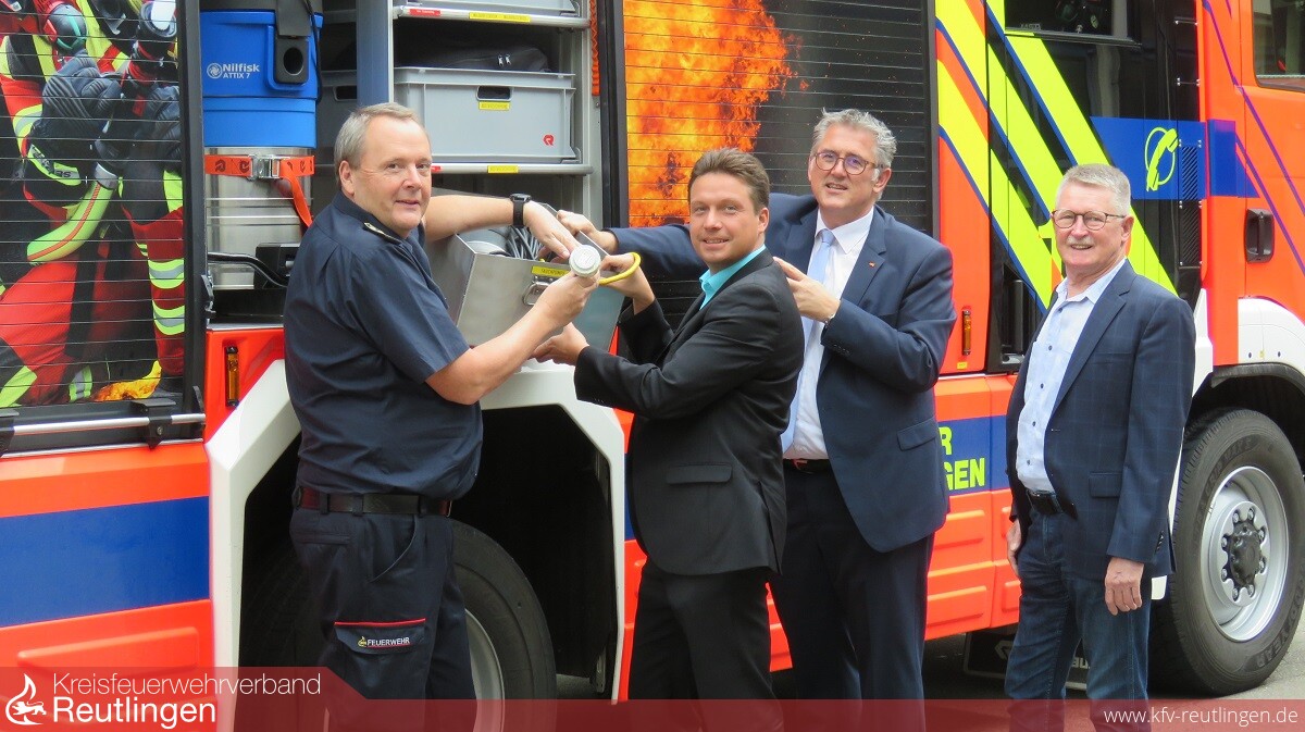 Darüber, wie die Feuerwehren vor Ort mit den Unwettern der vergangenen Tage umgegangen sind, informierten sich MdB Michael Donth und MdL Manuel Hailfinger. Bei der Feuerwehr Metzingen erfuhren die beiden Politiker von Feuerwehrkommandant Hartmut Holder, dass die Wehr von Montagabend bis Dienstagnachmittag zu rund 100 Einsätzen gerufen worden ist. In der Regel mussten Keller ausgepumpt und Bäume beseitigt werden, die durch den Sturm auf die Straßen gefallen waren. Glücklicherweise sind in Metzingen keine Verletzten zu beklagen gewesen. Sowohl Michael Donth, als auch Manuel Hailfinger lobten das Engagement der überwiegend freiwilligen Feuerwehrangehörigen. Vor welchen Probleme die Ehrenamtlichen insbesondere im Spannungsfeld Beruf, Familie und Arbeitgeber stehen, berichtete CDU-Stadtrat Albert Welz, der jahrzehntelang Dienst in der Abteilung Neuhausen geleistet hat.