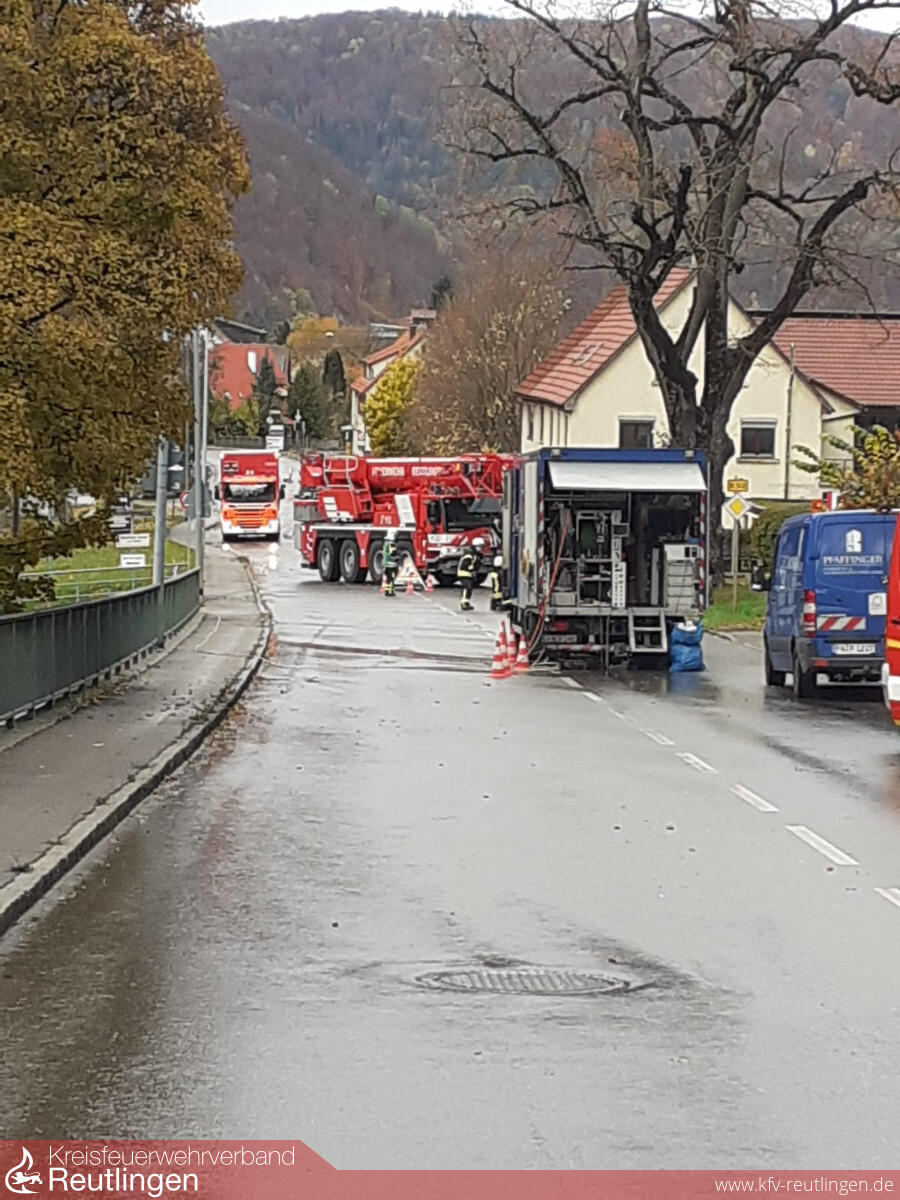 Der inzwischen eingetroffene Kran der Feuerwehr Reutlingen musste nicht eingesetzt werden.