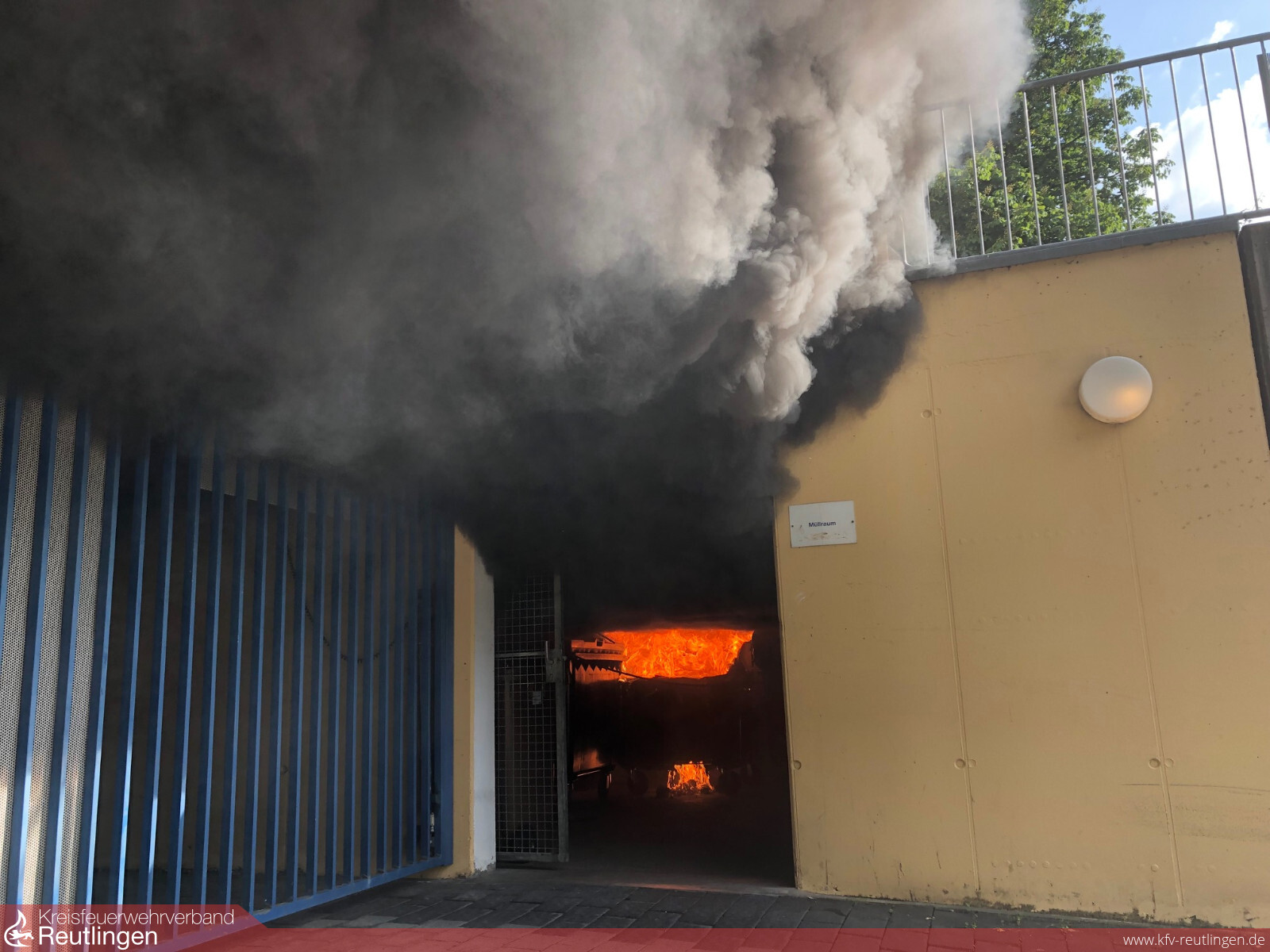 Am Freitag um 17.40 Uhr sind die Rettungskräfte zu einem Brand in der Schützenstraße gerufen worden. In einem Abstellraum neben der Tiefgaragenzufahrt des Gebäudes waren aus bislang nicht bekannter Ursache Mülleimer in Brand geraten. Der Brand wurde durch die Feuerwehr Metzingen gelöscht, ein Ausbreiten auf andere Gebäudeteile konnte verhindert werden. Es entstand nach ersten Schätzungen ein Sachschaden in Höhe von 15 000 Euro. (Quelle: PP Reutlingen)