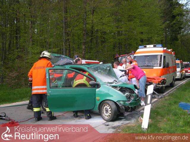 Mit sehr schweren, aber nicht lebensgefährlichen Verletzungen musste ein 19-jähriger Autofahrer nach einem Verkehrsunfall am Dienstagnachmittag mit einem Rettungshubschrauber in eine Klinik geflogen werden. Der junge Mann fuhr mit seinem Renault Twingo gegen 17.15 Uhr auf der K 6708 von Bleichstetten in Richtung Bad Urach und wollte mit überhöhter Geschwindigkeit eine unübersichtliche Linkskurve schneiden. Als ihm jedoch in diesem Moment ein Mercedes Sprinter entgegen kam, wich er ruckartig nach rechts aus. Dabei geriet der Twingo auf den unbefestigten Fahrbahnrand, worauf der 19-jährige Fahrer das Fahrzeug beim Gegenlenken übersteuerte und die Kontrolle verlor. Der Renault schleuderte nach links auf die Gegenfahrbahn und prallte dort seitlich frontal mit einem hinter dem Sprinter entgegen kommenden Opel Astra eines 42-jährigen Mannes zusammen, der sich zum Glück nur leichte Verletzungen zuzog. Der 19-jährige Unfallverursacher hingegen wurde schwer verletzt und außerdem in seinem Fahrzeug eingeklemmt, so dass er von der Bad Uracher Feuerwehr geborgen werden musste. An den beiden verunglückten Autos entstand jeweils wirtschaftlicher Totalschaden in Höhe von insgesamt rund 14.000 Euro.