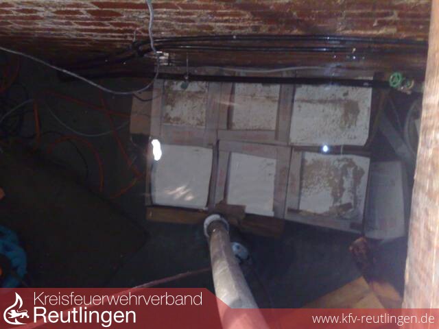 Durch schnelles Herannahmen von 2 ETP konnte der Wasserstand nach ca. 1,5 Stunden bis auf wenige Pfützen gesenkt werden.