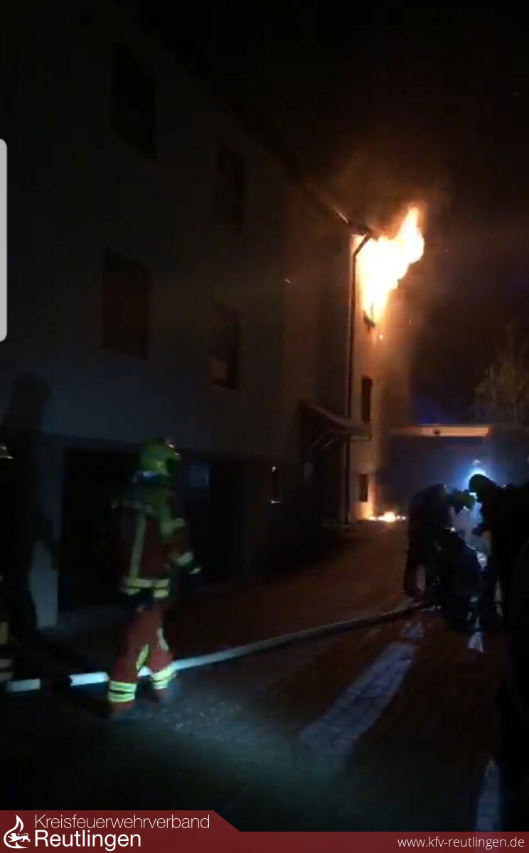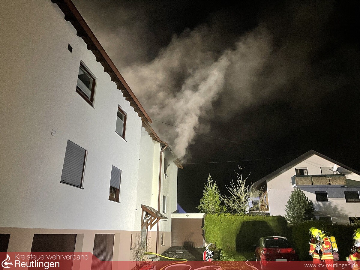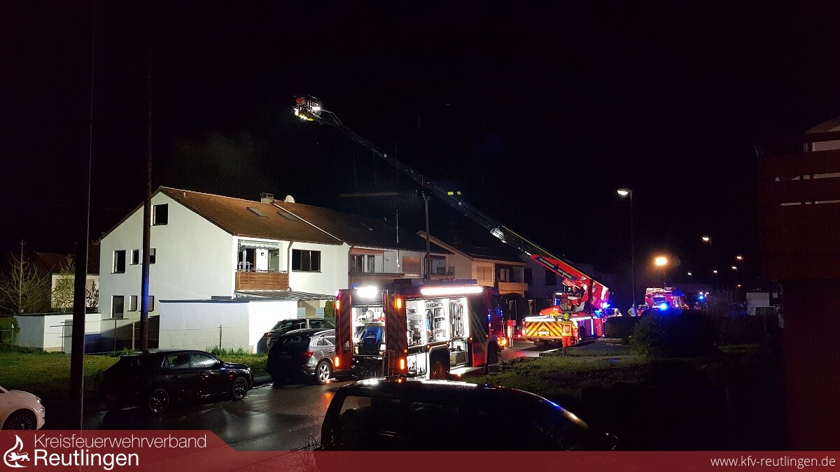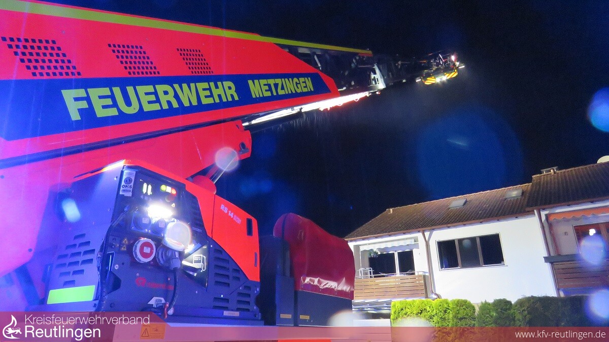 Die Löschmaßnahmen zeigten jedoch schnell ihre Wirkung, sodass der Brand nach kurzer Zeit unter Kontrolle war und anschließend ohne weitere Ausbreitung gelöscht werden konnte. Die Bewohner und zwei Hunde des Hauses wurden durch den Rettungsdienst und die DRK-Bereitschaft Metzingen betreut. Aufgrund des anhaltenden Regens wurden hierfür ein Zelt aufgebaut. Verletzt wurde zum Glück niemand.