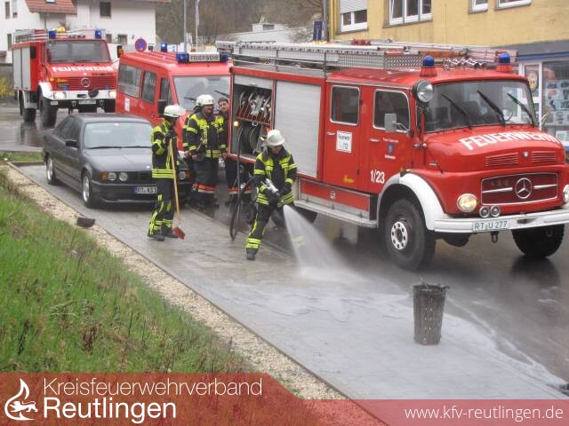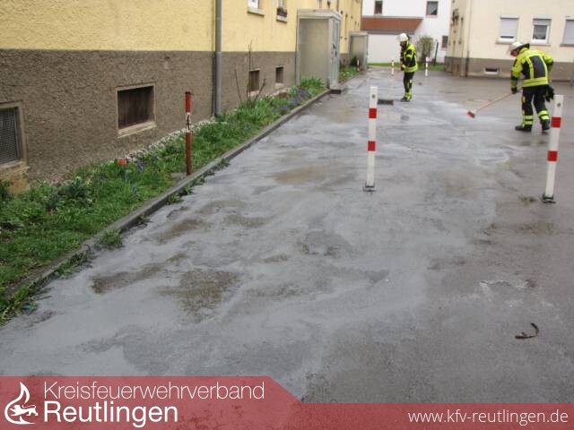 Die Aufgaben der Feuerwehr beinhalteten das sichern der Kanaleinläufe mit einem Gully-Ei, das ausgetretene Heizöl mit Bindemittel aufzunehmen um die Hoffläche zu reinigen. Des Weiteren wurde die Kläranlage über den Austritt des Heizöles informiert und die Kanaleinläufe gespült