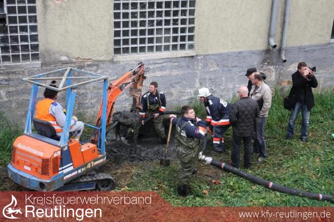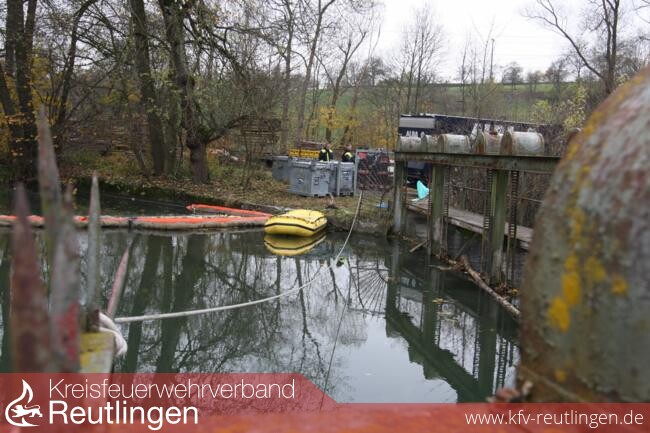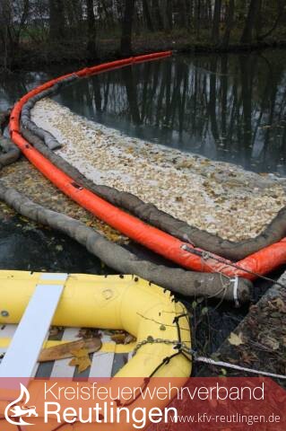 In einem Firmengebäude in der Mühlwiesenstraße wurde gegen 9.00 Uhr Heizöl angeliefert. Aus noch ungeklärter Ursache lief das Öl im Keller des Gebäudes aus und floss über ein im Gebäude vorhandenes, altes Kanalsystem in die Erms. Die Feuerwehr Metzingen und auch die Wehren der flussabwärts entlang der Erms und des Neckars liegenden Gemeinden waren zur Bekämpfung der Gewässerverunreinigung im Großeinsatz. Das ebenfalls kontaminierte Erdreich zwischen dem Gebäude und der Erms, wie auch die Uferbefestigung mussten mit schwerem Gerät abgetragen werden. Aus den Kellerräumen und dem Kanalsystem konnten noch etwa 1000 Liter Öl-Wasser-Gemisch abgepumpt werden, rund 3.500 Liter Heizöl flossen in das Wasser der Erms und verunreinigten das umliegende Erdreich.