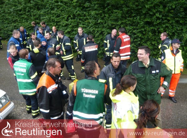 Rettungstaucher der Feuerwehren Reutlingen und Tübingen sowie des DLRG´s alarmiert.