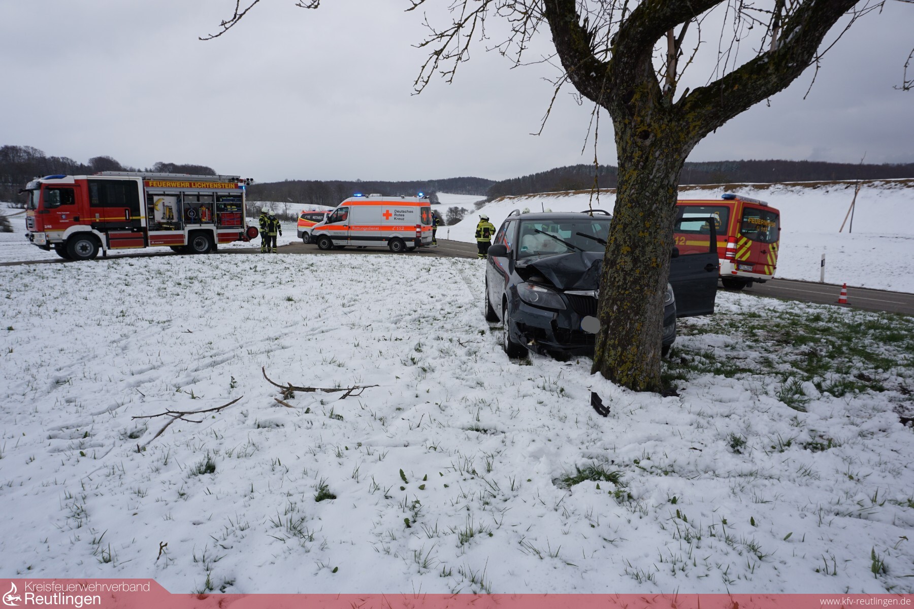 Um 15:47Uhr wurde die Feuerwehr Lichtenstein, mit dem Stichwort „H2 VU schwer“, auf die K6711 Holzelfingen in Richtung Ohnastetten alarmiert. Aus noch ungeklärter Ursache, ist ein PKW von der Strasse abgekommen und frontal gegen einen Baum geprallt. Die anfängliche Meldung über eine bewusstlose Fahrerin, konnte beim Eintreffen der ersten Kräfte nicht bestätigt werden. Die am Unfall alleinbeteiligte Fahrerin, konnte zeitnah dem Rettungsdienst übergeben werden.
