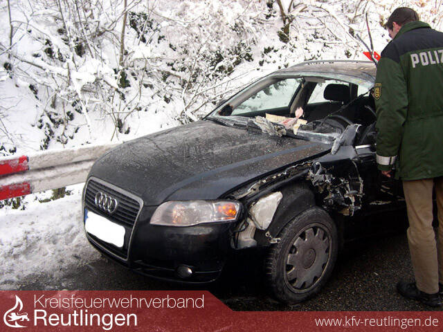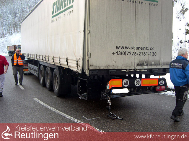 Am Montag Morgen wurde die Feuerwehr zur Überlandhilfe in die Münsinger Steige alarmiert. Kurz nach der Gemarkungsgrenze von Bad Urach kam es zu einem folgenschweren Unfall, bei dem ein 45jähriger Mann schwer verletzt wurde. Als ein Fahrer eines tschechischen Sattelschleppers gegen 10 Uhr auf der B 465 von Münsingen in Richtung Bad Urach unterwegs war und die Seeburger Steige abwärts fuhr, geriet der unbeladene Auflieger in einer scharfen Rechtskurve infolge eines Fahrfehlers zu weit nach links auf die Gegenfahrbahn und krachte dort auf einen ordnungsgemäß entgegenkommenden Audi eines 45-jährigen Mannes. Der Mann wurde schwer verletzt in seinem Fahrzeug eingeklemmt und musste von der Feuerwehr mit hydraulischen Rettungsgerät befreit werden. Durch Zufall waren beim Alarmeingang drei Kameraden der Uracher Wehr im Gerätehaus und konnten sofort mit dem VRW abrücken. Durch diesen Zeitvorteil war der VRW als erstes an der Einsatzstelle und konnte bis zum Eintreffen der Feuerwehr Münsingen den Mann aus seiner Lage schon befreien und dem Rettungsdienst übergeben. Die weiteren Aufräumarbeiten erledigten dann die Kameraden aus Münsingen. Die Uracher Wehr konnte wieder einrücken.