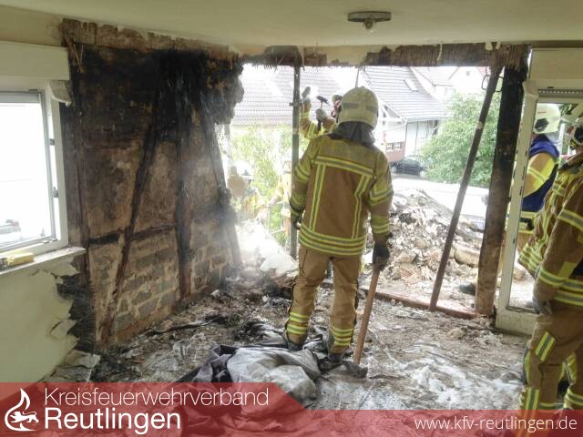 Beim Eintreffen war das Haus komplett verschlossen und es musste gewaltsam ein Zugang durch die Haustüre geschaffen werden.