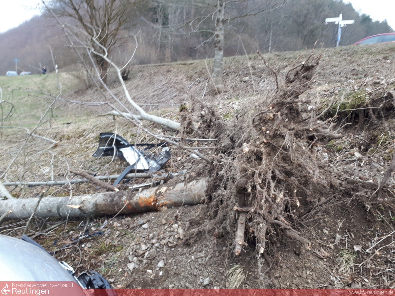 Da in der ersten Meldung von einer eingeklemmten Person ausgegangen werden musste, wurde der Rüstzug der Feuerwehr Bad Urach alarmiert. An der Einsatzstelle angekommen, war der Fahrer von Ersthelfern schon aus dem Auto gerettet worden und lag vorbildlich, in der Stabilenseitenlage auf eienr Wiese. Die Kräfte der Feuerwehr unterstützen den Rettungsdienst bei der Versorgung des Patienten, stellten den Brandschutz sicher, klemmten die Batterie des Fahrzeuges ab und halfen im späteren Einsatzverlauf bei der Bergung des Fahrzeugs.