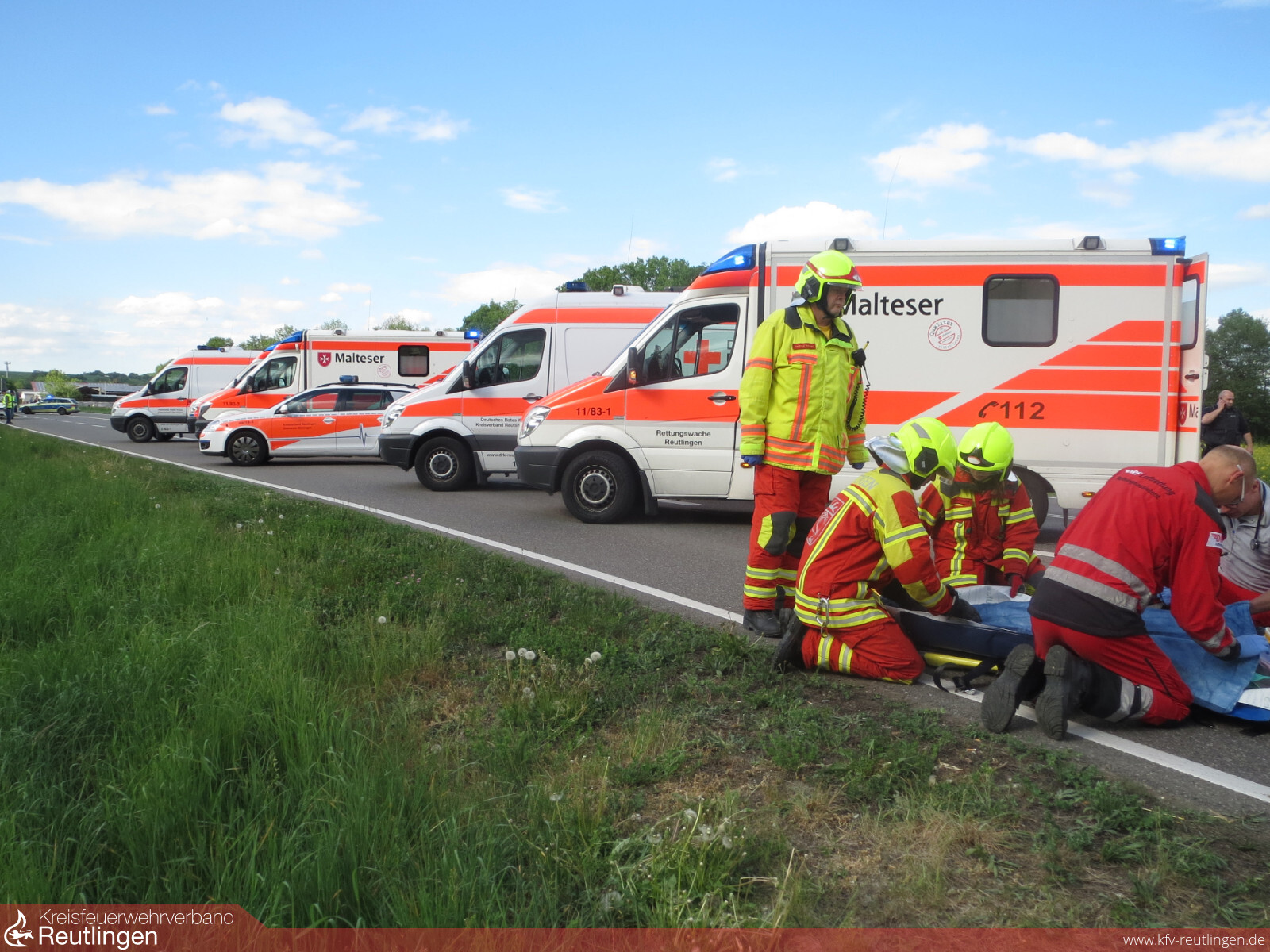 Am Nachmittag des Maifeiertags hat sich ein schwerer Verkehrsunfall mit insgesamt acht verletzten Personen auf der B 312 in Höhe der Zufahrt Nordtangente ereignet. Eine 36 Jahre alte Frau fuhr mit ihrem Seat Ibiza an der Einfahrt Metzingen-Nord auf die Bundesstraße in Fahrtrichtung Stuttgart ein und missachtete hierbei die Vorfahrt der auf der B 312 in Fahrtrichtung Stuttgart befindlichen Toyota-Lenkerin.