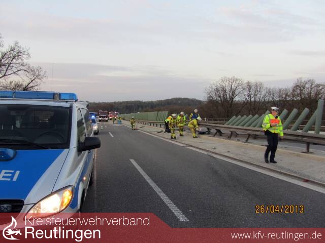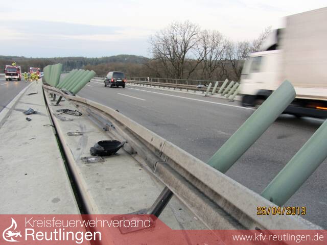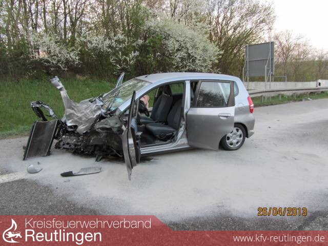 Ein 40-jähriger Hondalenker befuhr am Freitagmorgen die B 27 in Richtung Stuttgart. Am Ende der Aichtalbrücke verlor er die Kontrolle über sein Auto und schleuderte in die Mittelleitplanke. Anschließend blieb der Pkw quer zur Fahrbahn auf der Bundesstraße stehen. Dies bemerkte ein 28-jähriger Opellenker zu spät und prallte gegen das verunfallte Fahrzeug. Durch herumfliegende Teile wurde ein drittes Auto auf der Gegenspur ebenfalls beschädigt. Der 40-Jährige erlitt schwere Verletzungen und musste in ein Krankenhaus gebracht werden. Der 28-Jährige wurde leicht verletzt. Der Schaden wird auf 25 000 Euro geschätzt. Zur Unterstützung war die Feuerwehr Walddorfhäslach mit drei Fahrzeugen und die Feuerwehr Filderstadt mit zwei Fahrzeugen an der Unfallstelle. In die Ermittlungen wurde ein Sachverständiger eingeschaltet. Während der Unfallaufnahme musste die B 27 zum Teil komplett gesperrt werden. Im Berufsverkehr kam es zu einem 10 Kilometer langen Stau.