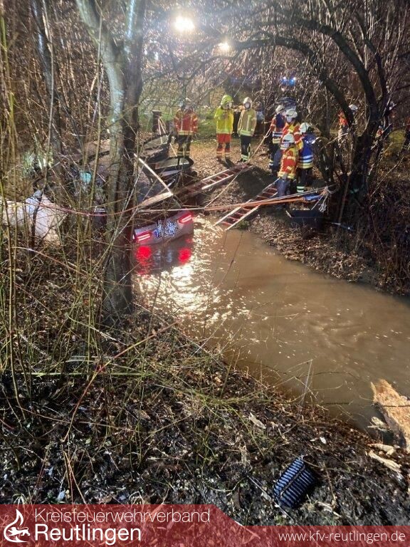 Anschließend musste mithilfe der Seilwinde des HLF der Feuerwehr Metzingen das Fahrzeug noch aus dem Wasser geborgen werden, so dass der Einsatz erst kurz vor Mitternacht abgeschlossen werden konnte.
