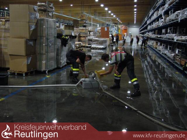 Durch den defekten Sprinkler traten mehrere tausend Liter Wasser aus bis dieser abgeschiebert werden konnte. Das Wasser wurde von der Feuerwehr abgepumpt bzw. abgesaugt. Aufgrund der hohen Wassermenge, zögerte sich der Einsatz erheblich hinaus und man konnte erst gegen 03.00 Uhr Einsatzende melden.
