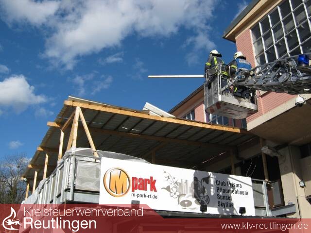Insgesamt 18 mal mussten die Fahrzeuge der Abteilungen Berufsfeuerwehr, Stadtmitte, Betzingen, Oferdingen, Mittelstadt, Degerschlacht, Sickenhausen und Altenburg in der Stadt Reutlingen ausrücken. Umgestürzte Bäume, abgerissene Markisen und Werbetafeln, umgestürzte Bauzäune und umgestürzte Baugerüste waren zu verzeichnen.