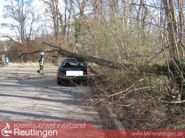 Im Laufe des Vormittages fiel der Luftdruck und die Temperatur erheblich ab. Aufkommende Sturmböen erreichten die Stadt und den Landkreis Reutlingen kurz nach dem Mittag mit Windgeschwindigkeiten um die 100 km/h und machten eine ganze Reihe von Feuerwehreinsätzen notwendig.