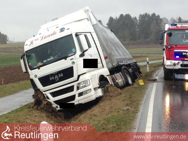 von der Fahrbahn abgedrückter LKW bei Engstingen