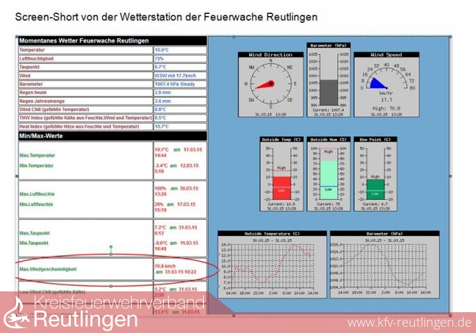 Screen-Short von der Wetterstation der Feuerwache Reutlingen