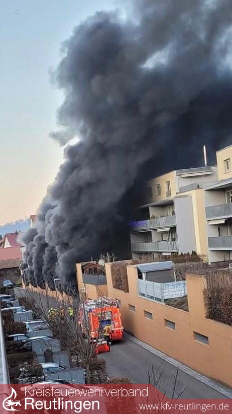 Am Sonntag, 19.01.2025 um 16:37 Uhr wurde die Feuerwehr Pfullingen von der Integrierten Leistellte für Feuerwehr und Rettungsdienst mit dem Einsatzstichwort B4 – Gebäudebrand – Brand Tiefgarage in die Herrmannstraße alarmiert. Gemäß Alarm- und Ausrückeordnung wurden daraufhin zwei Löschzüge der Feuerwehr Pfullingen zur Einsatzadresse entsandt. 4 Minuten nach der Alarmierung traf das erste Lösch-fahrzeug der Feuerwehr am Brandobjekt, einer Wohnanlage mit integrierter Tiefgarage ein, nach 9 Minuten befanden sich zwei Löschzüge (10 Fahrzeuge – 51 Einsatzkräfte) an der Einsatzstelle. Die Feuerwehr wurde von zahlreichen Bewohnern erwartet, die dem Einsatzleiter mitteilten, dass die betroffenen Gebäude geräumt sein müssten und in der Tiefgarage vermutlich mehrere PKW brennen. Im Bereich der Tiefgaragenöffnungen konnte eine massive Rauchentwicklung festgestellt werden, außerdem waren zwei, auf der Tiefgarage aufliegende Mehrfamilienwohnhäuser, in dichten schwarzen Rauch gehüllt.